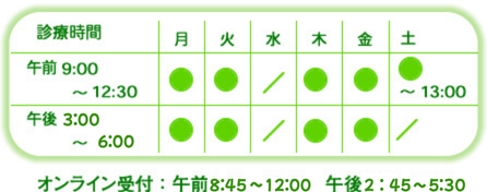 • ※土曜日のオンライン受付は8:45~12:30です。